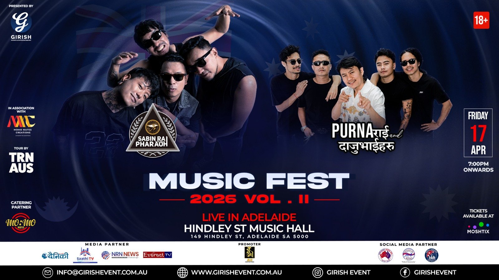 Girish Event and Entertainment is an event organization company in Australia established in 2017 that promotes Nepalese and Bhutanese community through arts, culture, entertainment, festivals, sports, awards presenting, live music and media (radio, film and television). Our vision is to provide world class entertainment to our Nepalese and Bhutanese community. To achieve this, we have a selective team of the professionals from successful business community and entertainment industry.