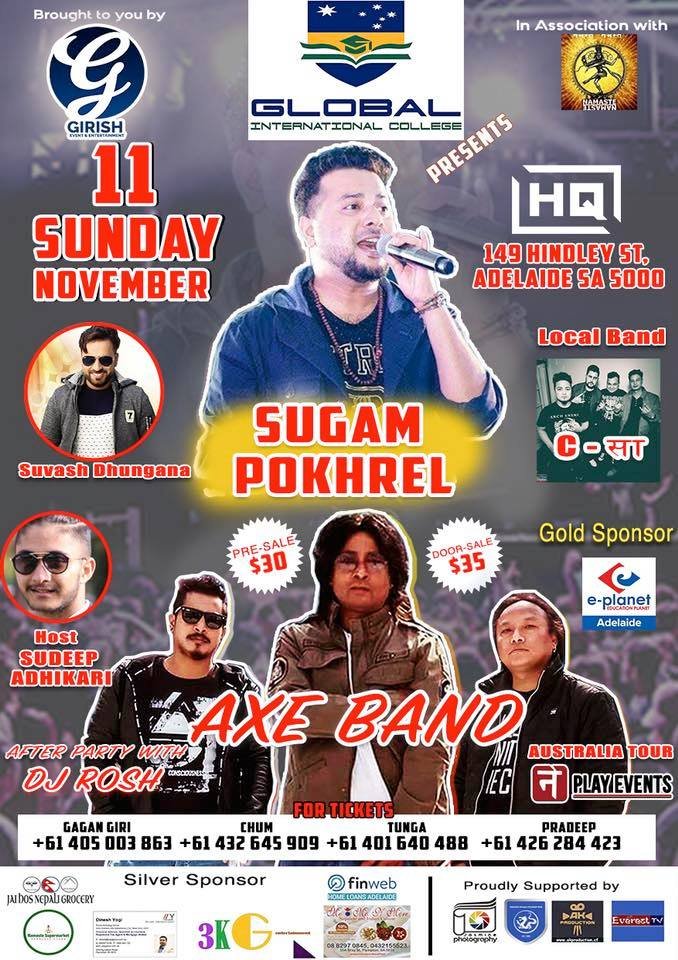 Girish Event and Entertainment is an event organization company in Australia established in 2017 that promotes Nepalese and Bhutanese community through arts, culture, entertainment, festivals, sports, awards presenting, live music and media (radio, film and television). Our vision is to provide world class entertainment to our Nepalese and Bhutanese community. To achieve this, we have a selective team of the professionals from successful business community and entertainment industry.